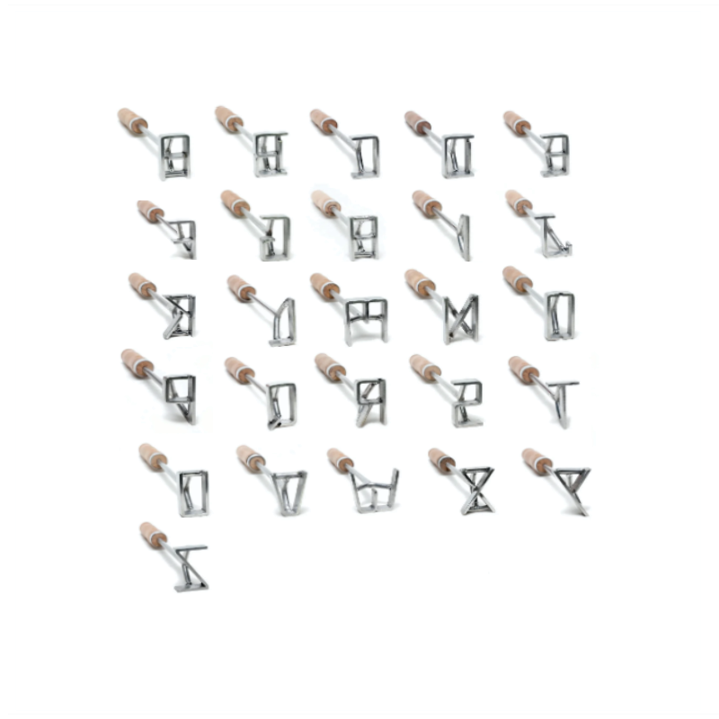 Cada letra é produzida manualmente, garantindo formas uniformes e marcações nítidas. Após o corte, cada peça passa por polimento manual e soldagem do cabo, resultando em um produto resistente, seguro e funcional. O kit completo é revisado antes do envio, assegurando acabamento perfeito e marcação segura.